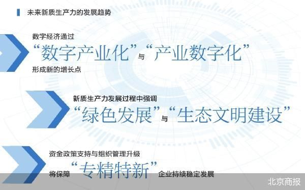 新时代下,新质生产力成为经济社会转型升级和提升国际竞争力的重要推动力、支撑力。为厘清新质生产力核心要素,探寻行业和实践路径,北京商报从实用性角度提出多个问题,国内机构如何认知新质生产力发展要点?哪些典型行业及应用路径可重点关注?金融行业如何寻找自己的新质生产力,如何破局当前短板?未来新质生产力的发展趋势是什么?结合现有国内政策、国际标准以及来自毕马威中国、马上消费研究院学术观点,我们尝试给出建议。